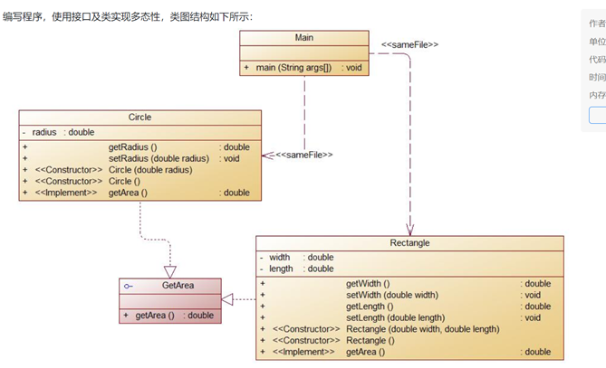 2、7-6 实现图形接口及多态性 (30 分) 题目详细:编写程序,使用接口及类实现多态性,类图结构如下所示: