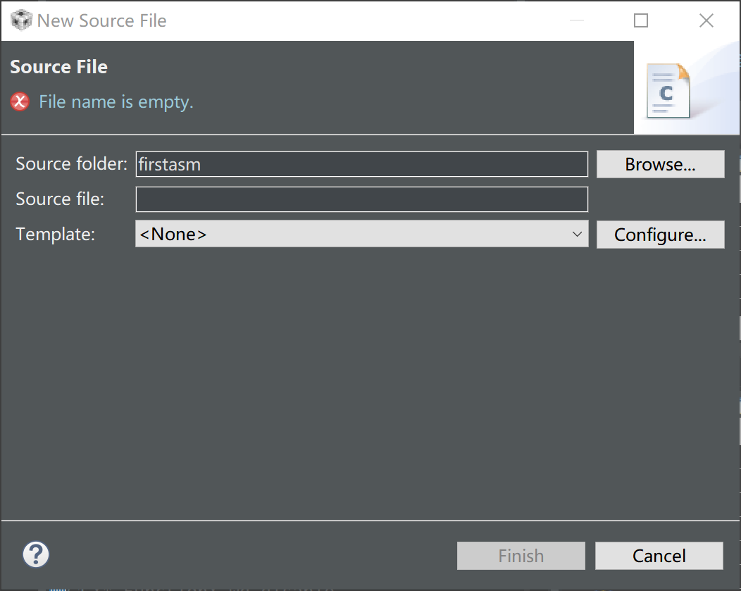 7.接着添加工程源文件:点击工程名——右键——New——Source File,出现下面窗口: