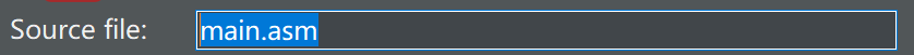 8.在中输入源文件名main.asm;