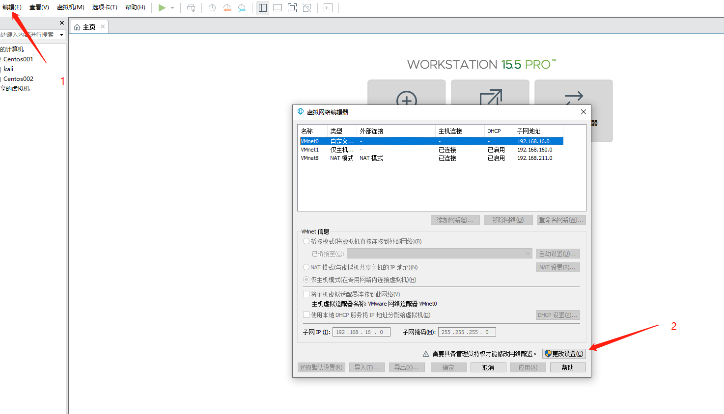 第四步:选择虚拟机,编辑网络设置