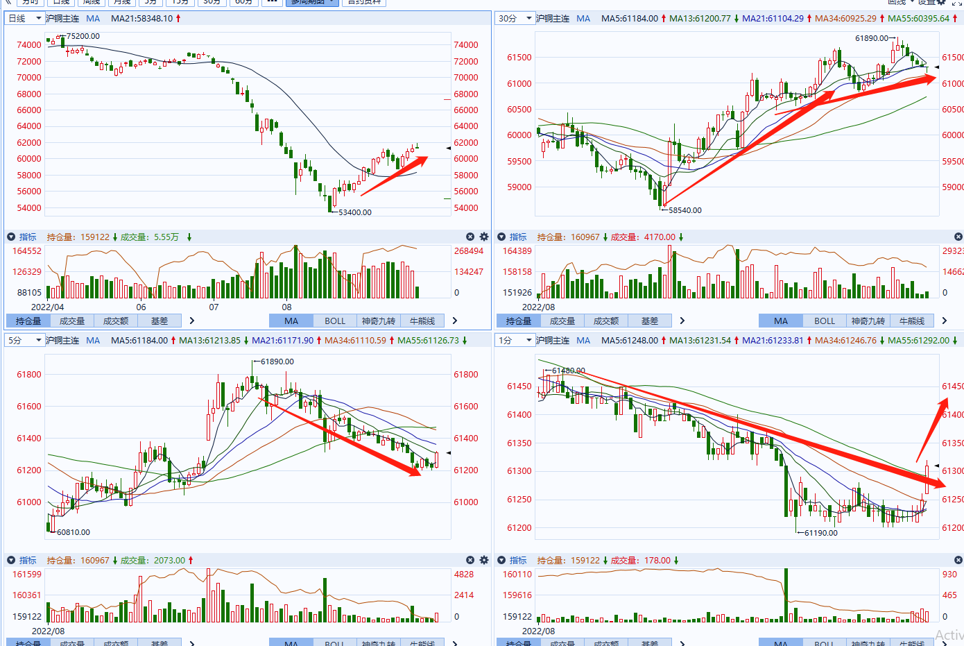 沪铜向上,但是感觉动能不足。但是在未明确表示下,不要轻易做空