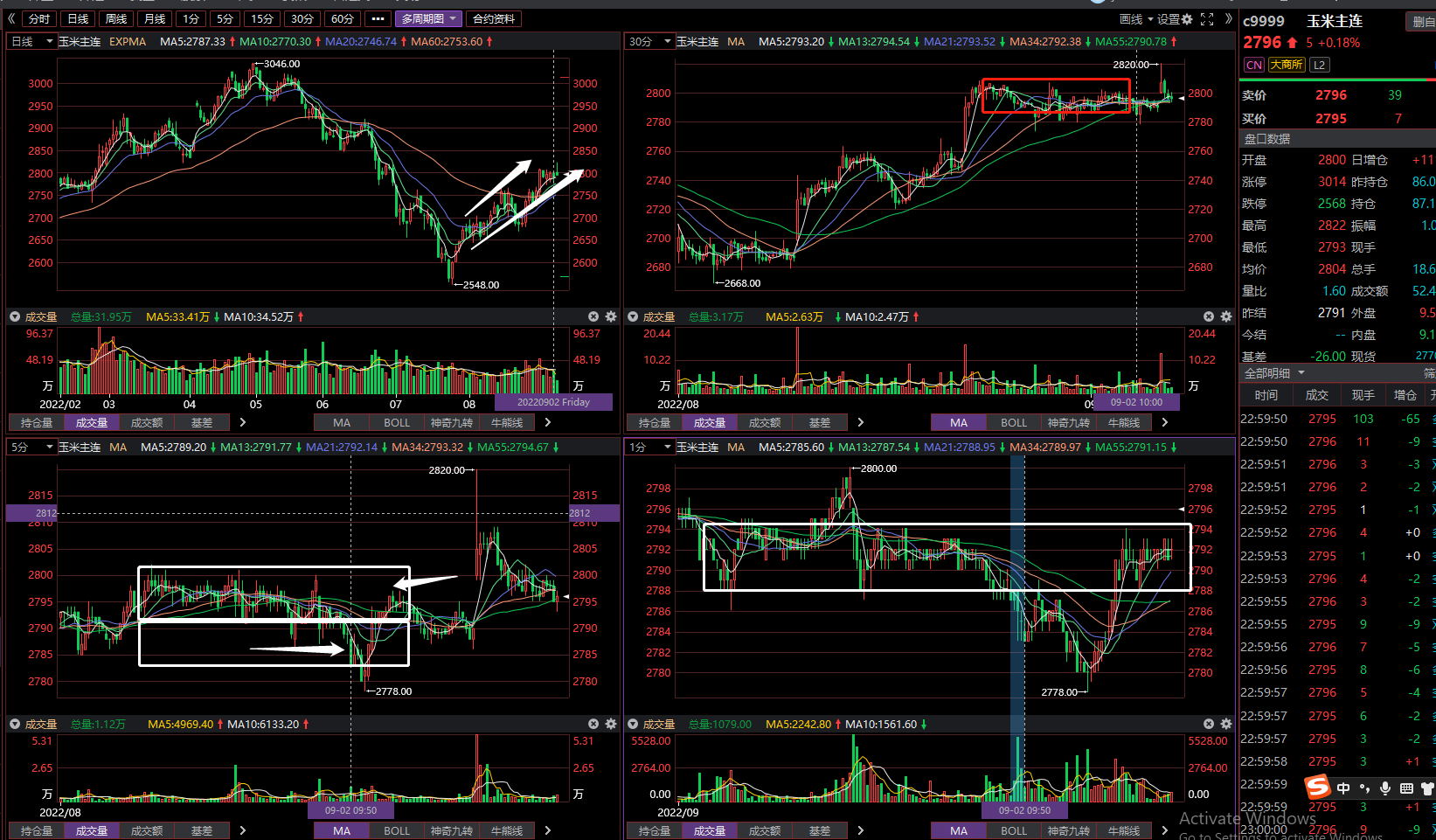 5分钟以为要向上,结果向下假突破,然后v形反转