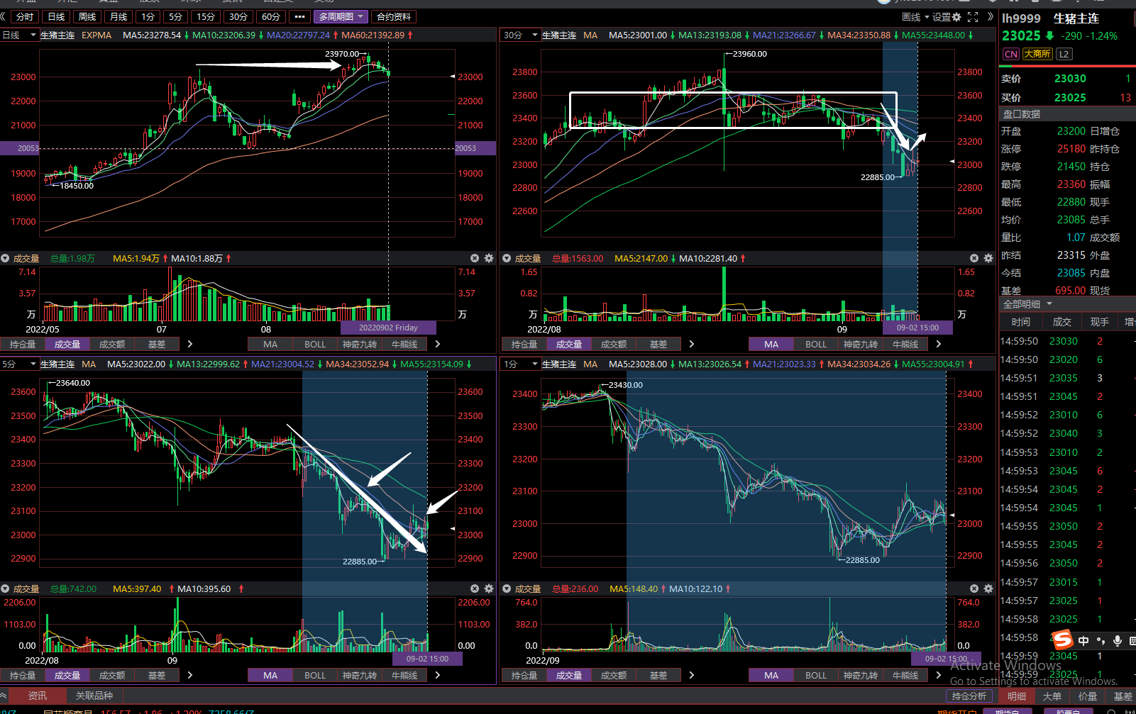 30分钟笔中枢震荡,最好的做空点在30分钟(第一个箭头处)