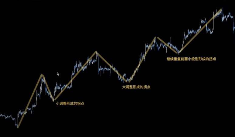 首先你要记住,行情有时候会有小级别拐点,之后又变成大级别调整,大小周期的切换。任何时候都是小周期逆势力量耗尽,然后顺着大周期进行操作。