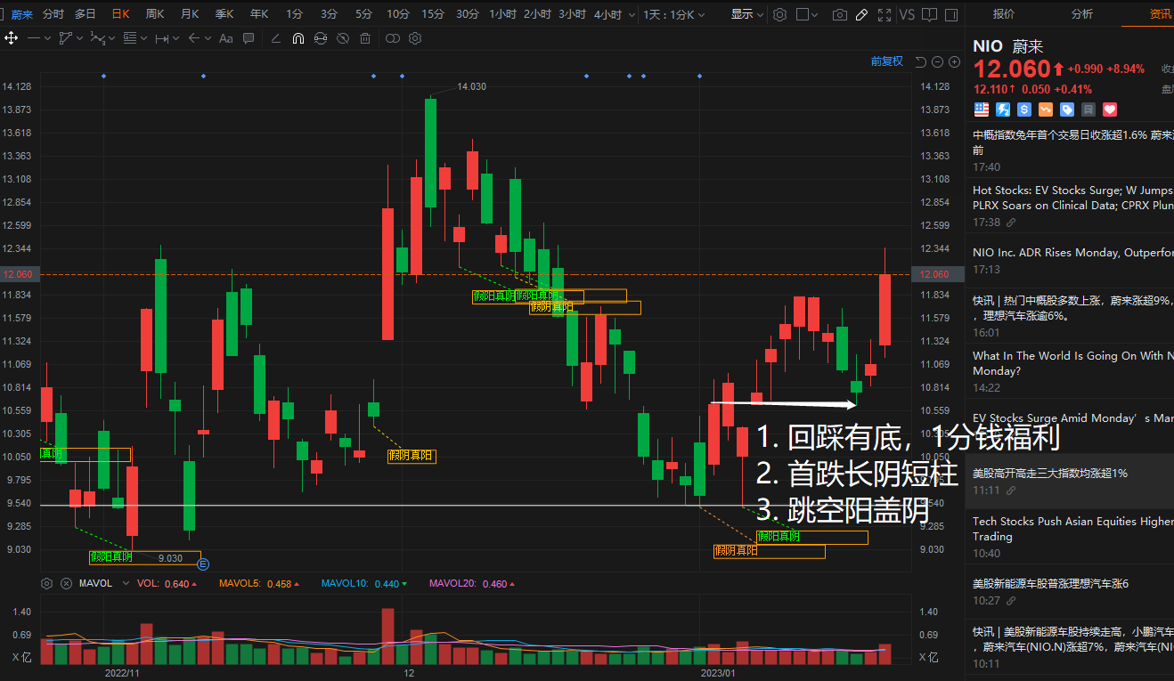 3. 凹底三剑客,有这些标志出现,凹底的可靠性增加。凹地是在换挡的地方介入