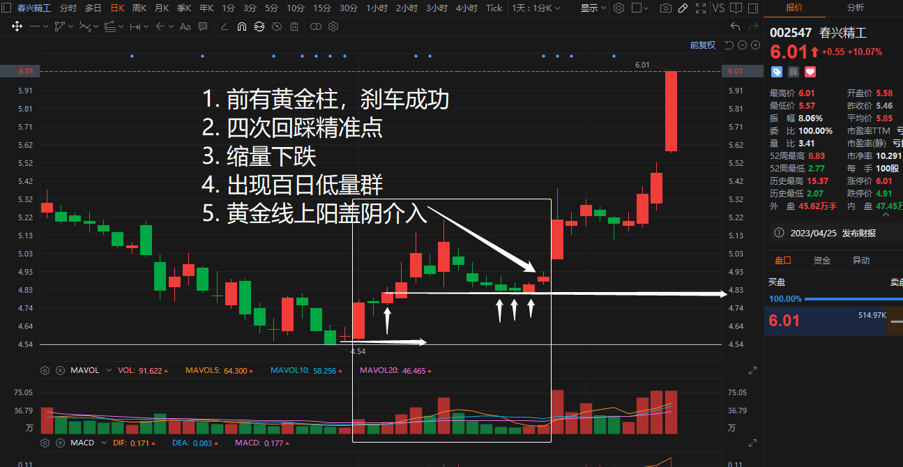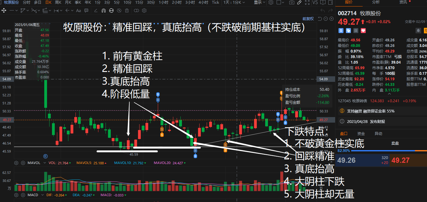 (3)百日低量。百低是在下跌的过程中百低,或者阶段低量。低量是底气和底线的温度计。