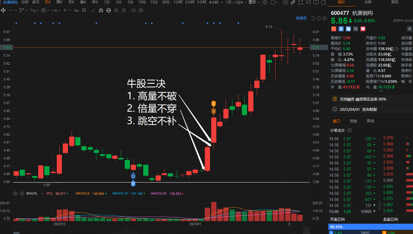 高量不破,倍量不穿,跳空不补