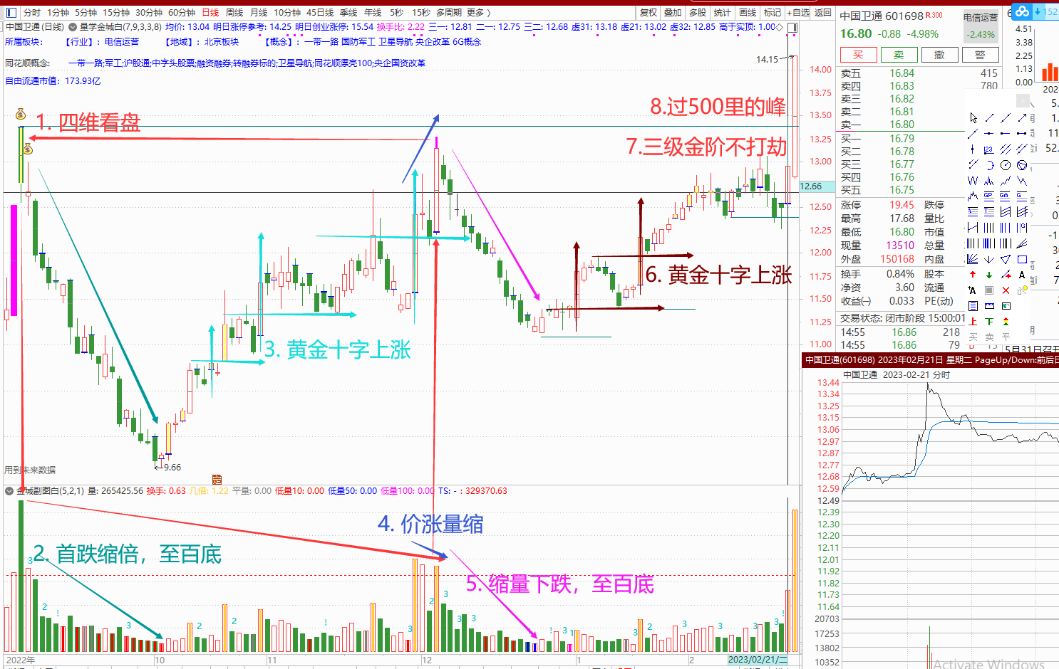 (1)最好是十字架的上涨,也就是顶底互换的上涨,或者是踩头的直接合力黄金柱