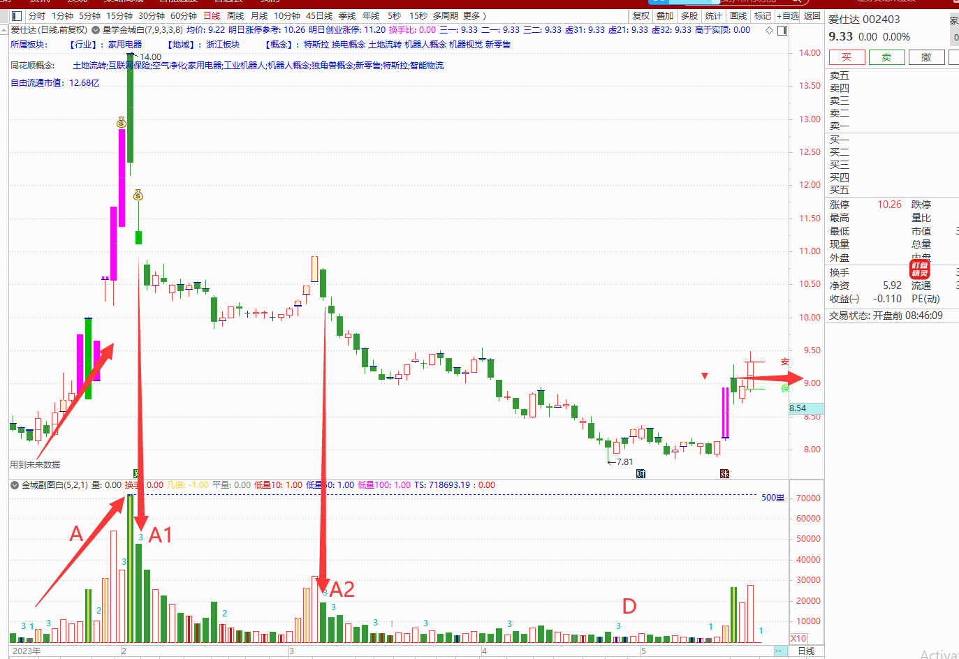 1. A钱:2023年3月6号是500里高量且之前放量的都是主力进场。