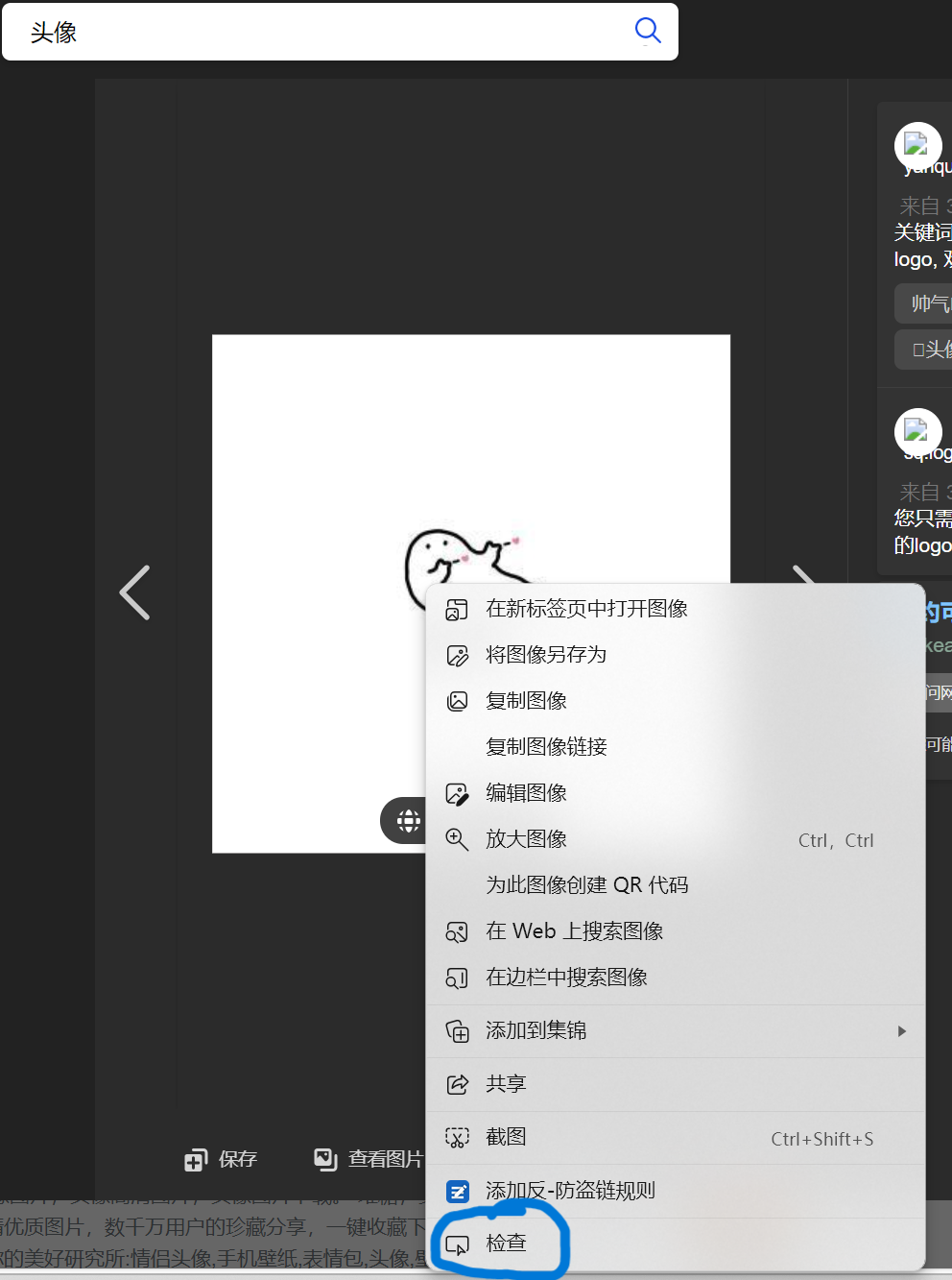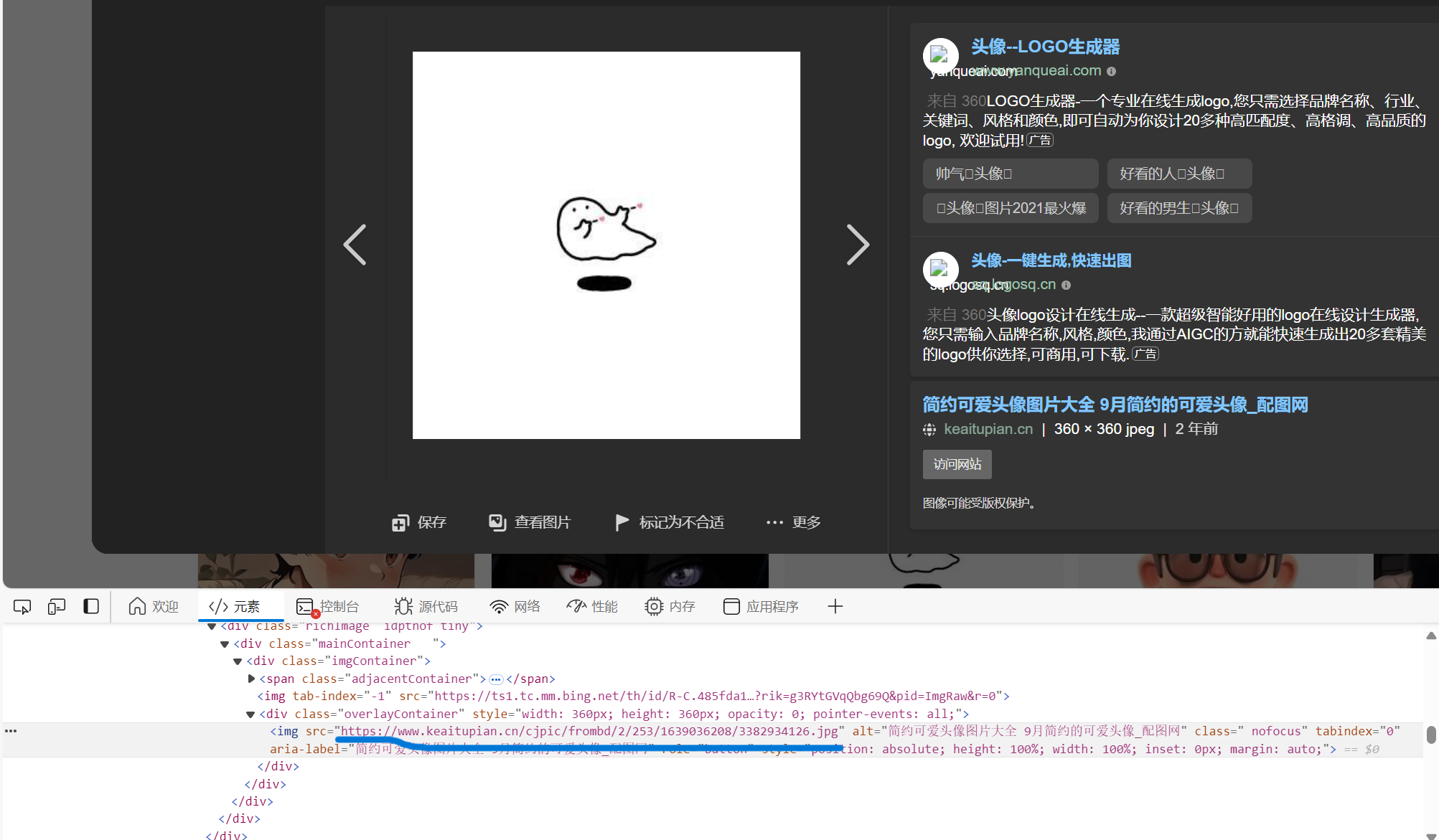 找到你要的图片,右击,点下面的检查按键,然后会变成下面的情况,双引号里面的就是地址,复制,放入小括号里就行了。