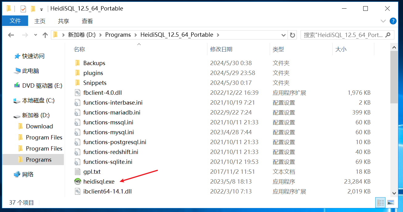 3、可下载便携式压缩包,解压缩(解压缩位置可自定义,例如:D:\Programs)后找到 heidisql.exe 应用程序直接鼠标双击运行或鼠标右键菜单选择“打开”;这边建议单击选中heidisql.exe 应用程序,鼠标右键菜单选择“发送到(N)→桌面快捷方式”,方便下次使用;