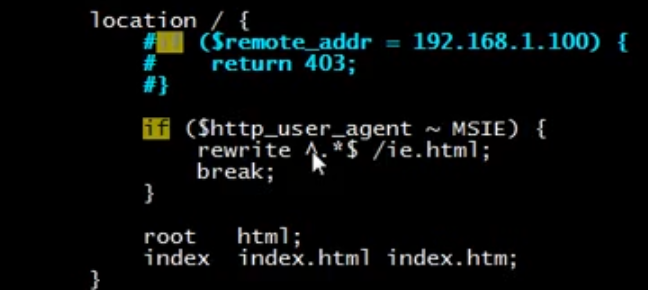 请求 ip/ ,首先会经过精准匹配 URL变成 ip/index.htm ,然后在模糊匹配变成ip/index.html .服务器返回/usr/local/nginx/html/index.htm文件给用户