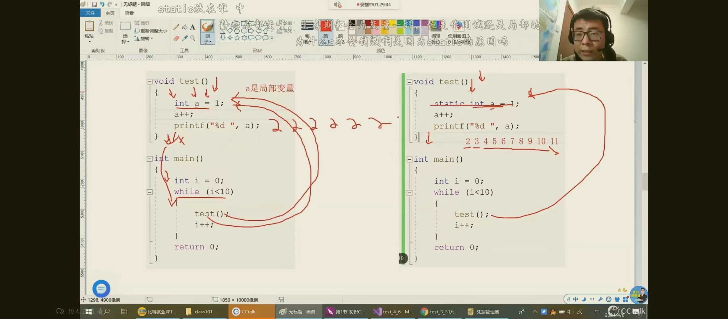 1.static修饰局局变量--改变了局部变量的生命周期(本质上是改变了变量的存储类型<栈区改变为静态区>)