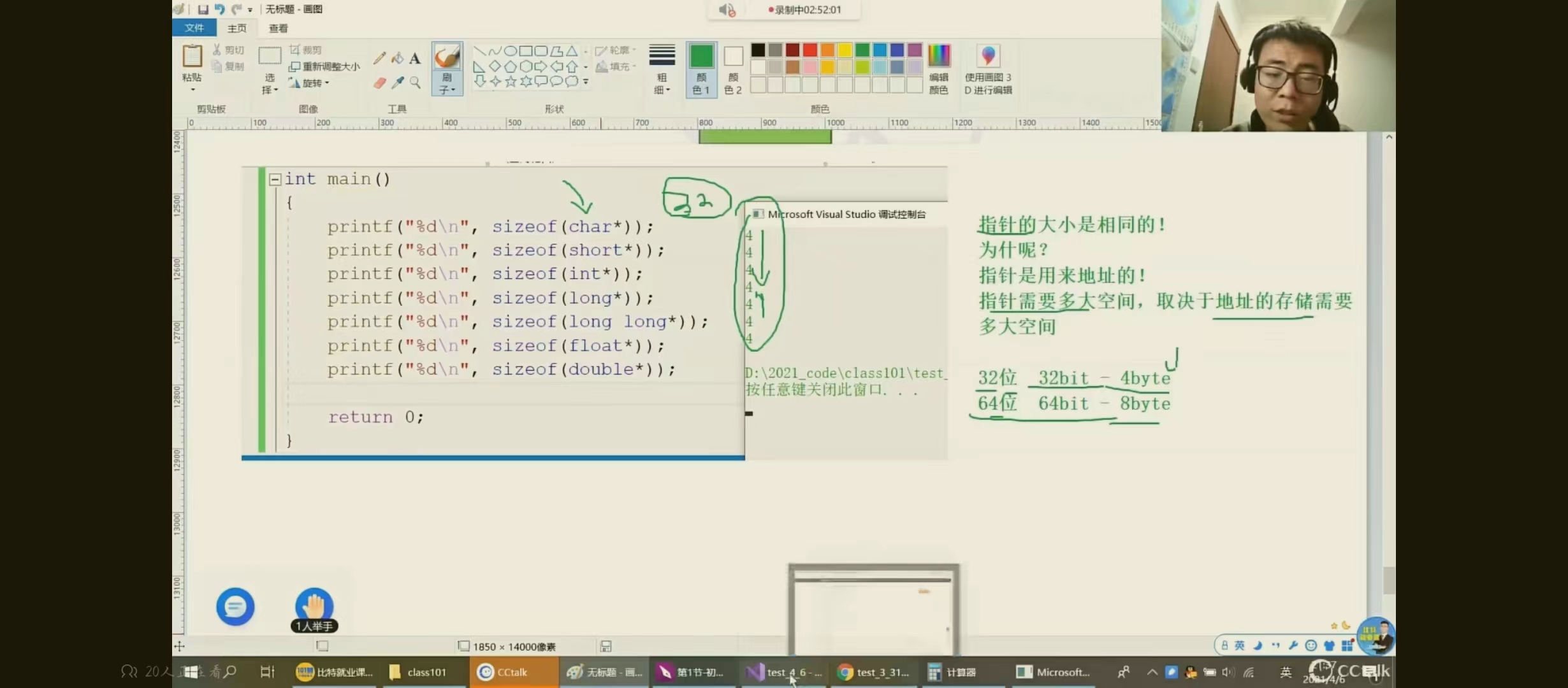 //为什么?因为指针是用来地址的,指针需要多大空间取决于地址的储存需要多大空间