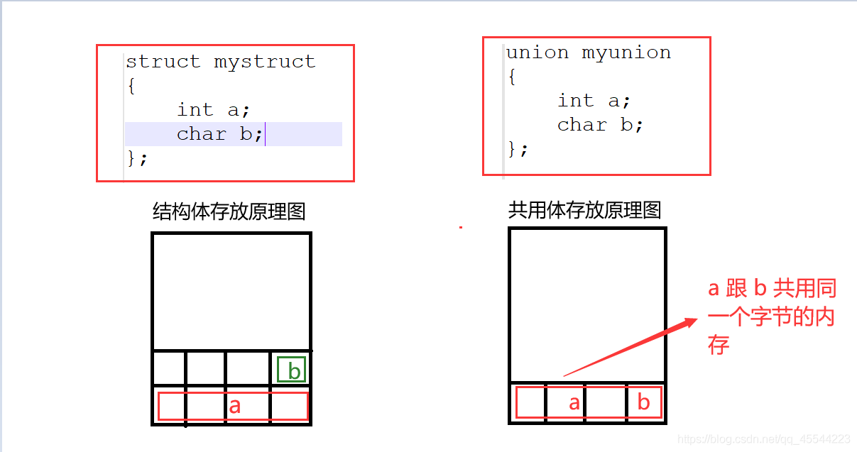 共用体union和结构体struct在类型定义、变量定义、使用方法上很相似。