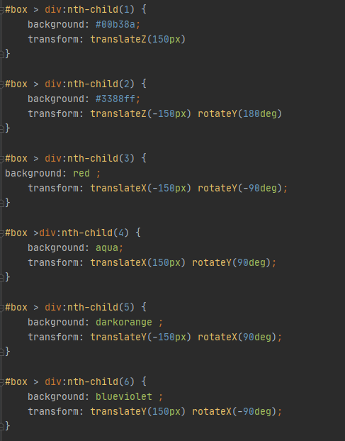 tip:1.要想子类3D显示,必须要对父类进行3D定义:transform-style: preserve-3d
