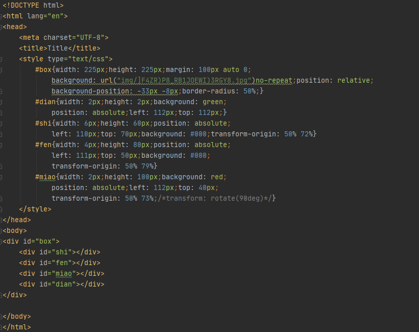 首先我们需要建立一个HTML文件名命为旋转时钟.html