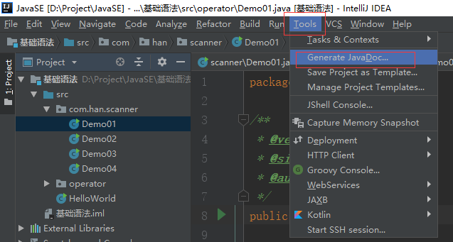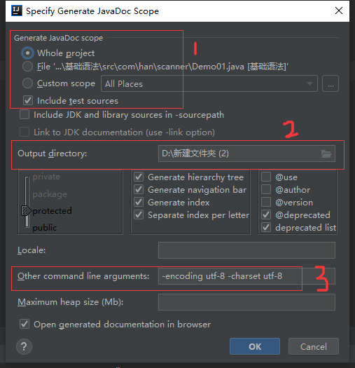 javadoc -encoding UTF-8 -charset UTF-8 Demo01.java