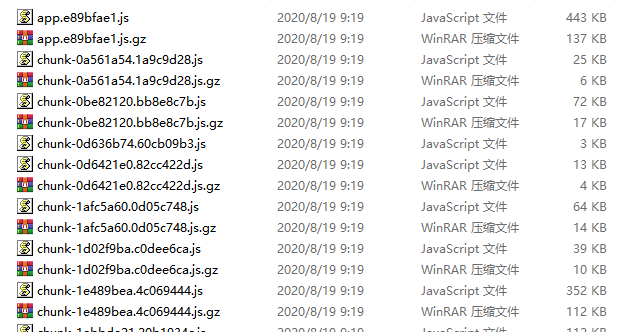 使用npm run build 打包,打包完成后可以看到后缀为.gz的压缩文件