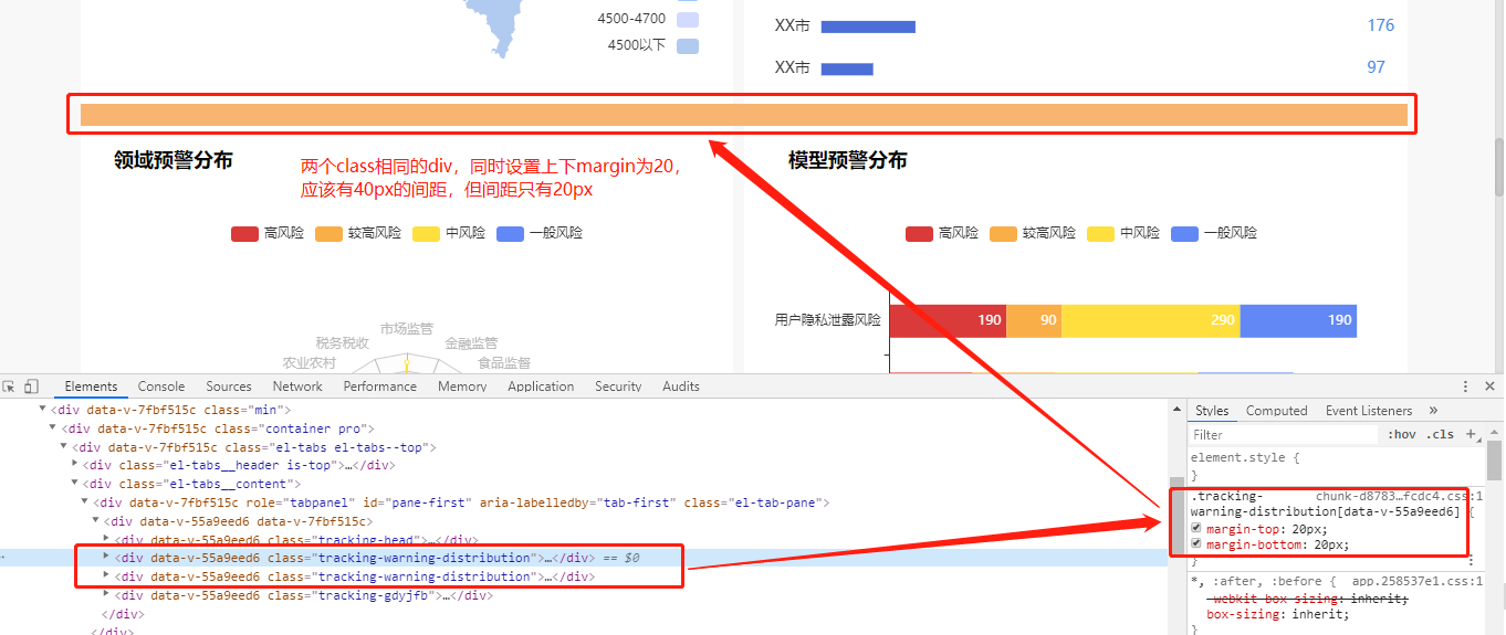 如图所示:在项目开发过程中,两个相同div之间同时设置外边距margin-top和margin-bottom为20px,我们期望两个div之间有40px的间距,但是出现的效果确是只有20px,不太符合我们的预期结果。
