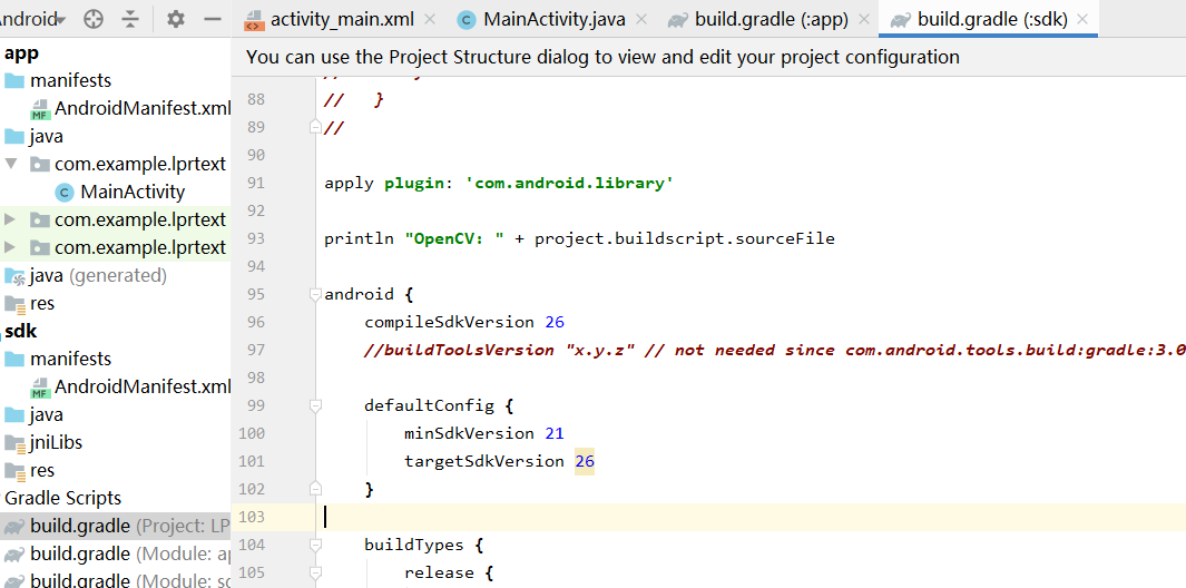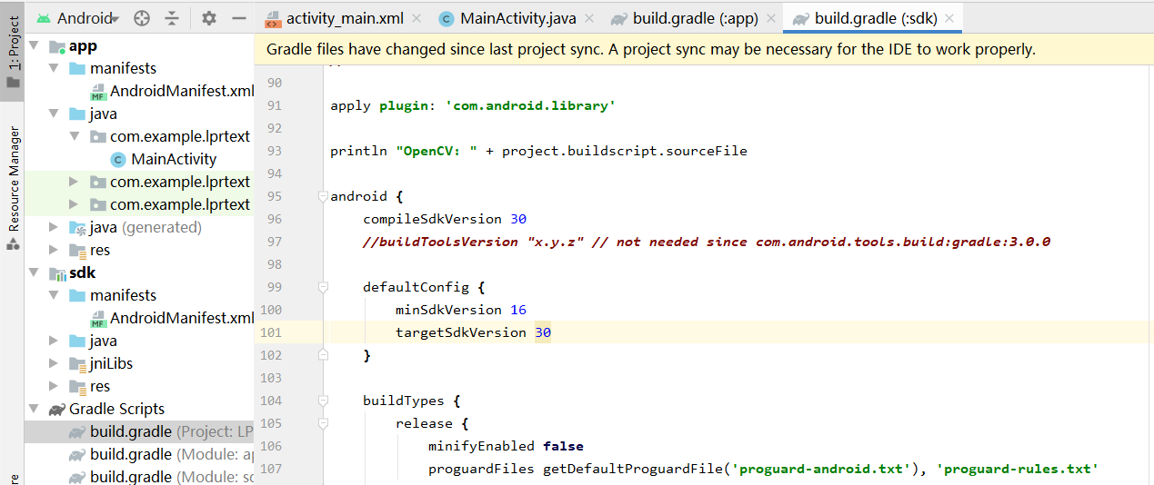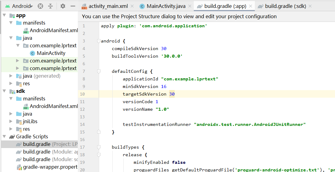 然后打开sdk build.gradle文件和app build.gradle文件