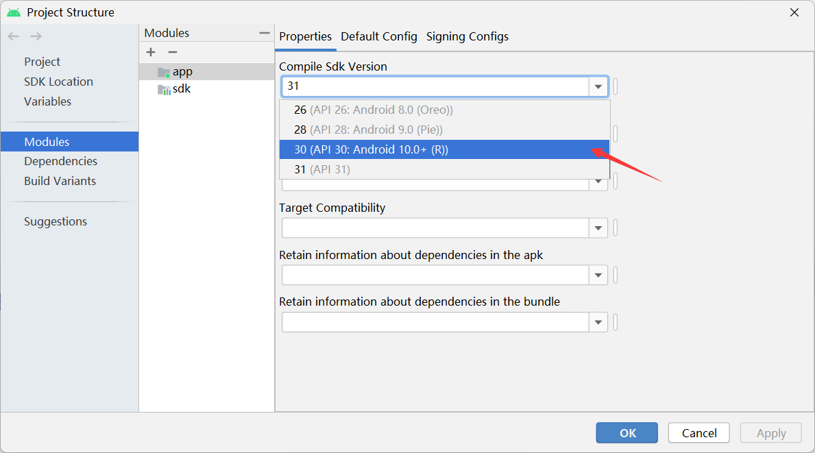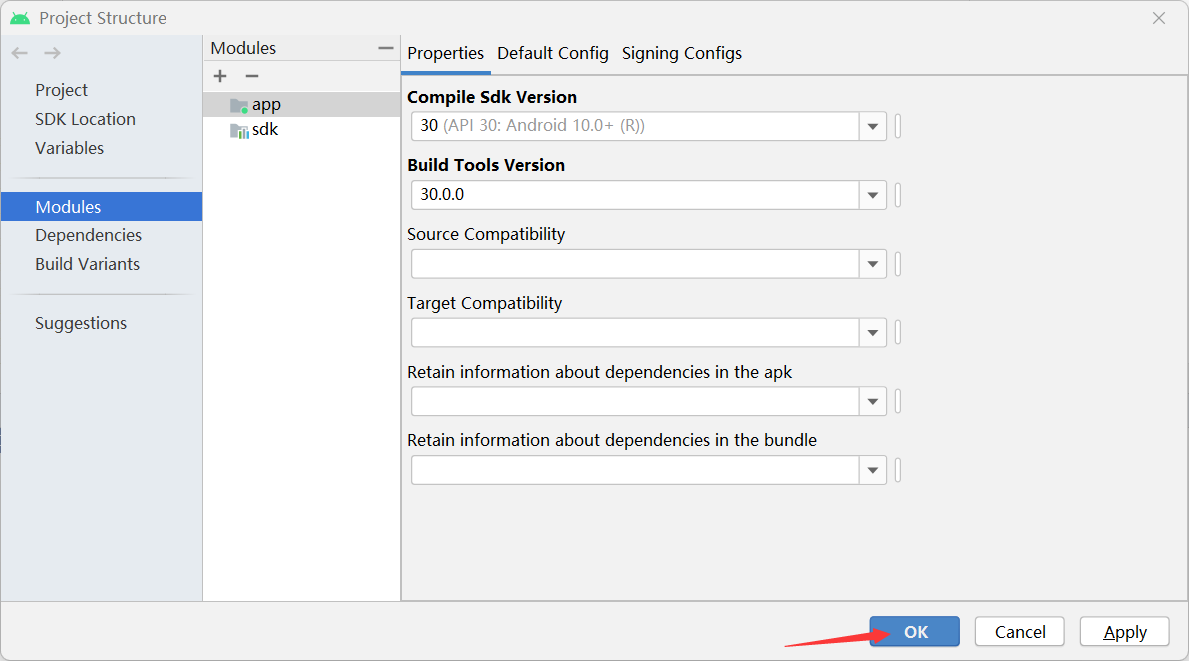将sdk build.gradle文件的版本改成和app的一样