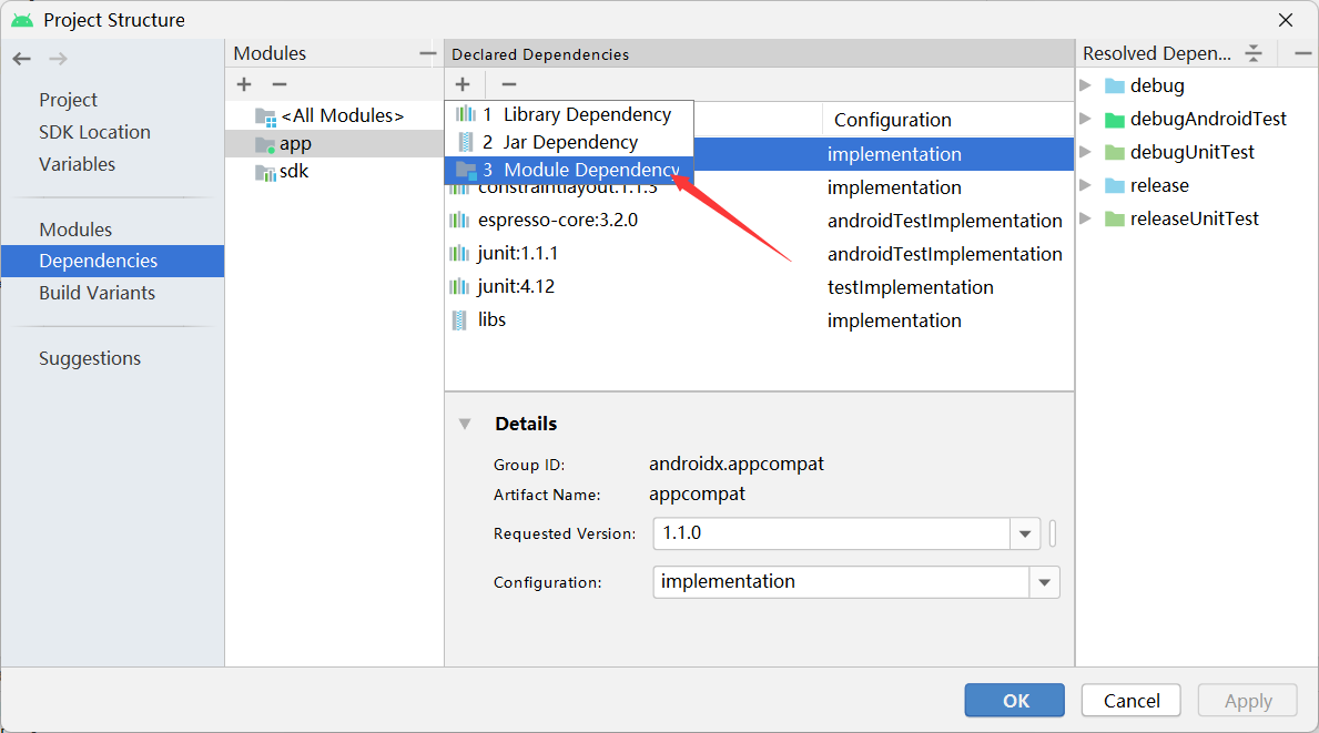 app build.gradle文件的dependencie出现这就ok了