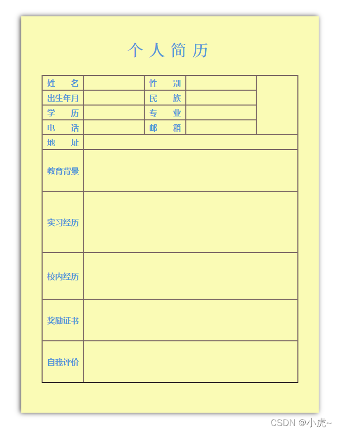 HTML+CSS例子>个人简历表格