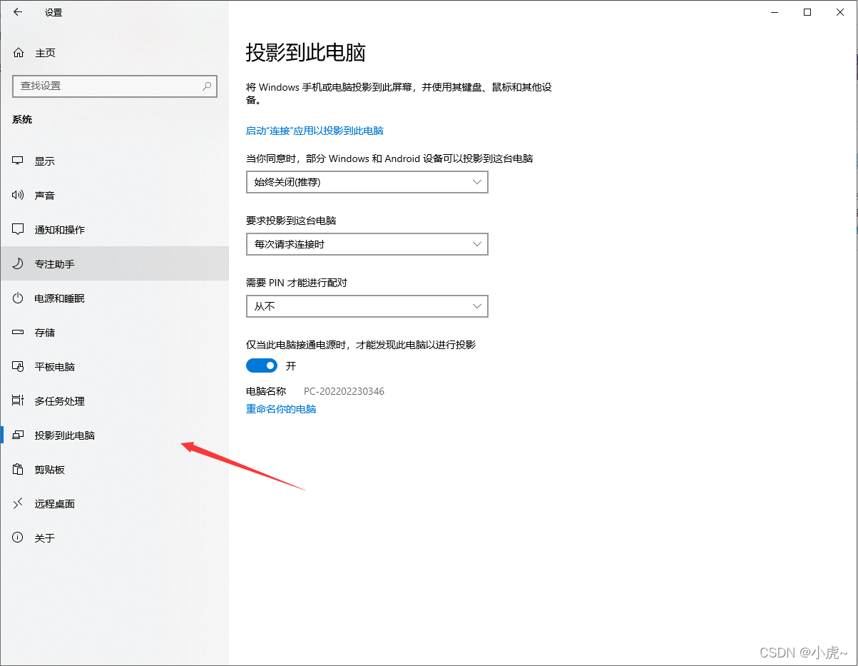 点击投影到此电脑
