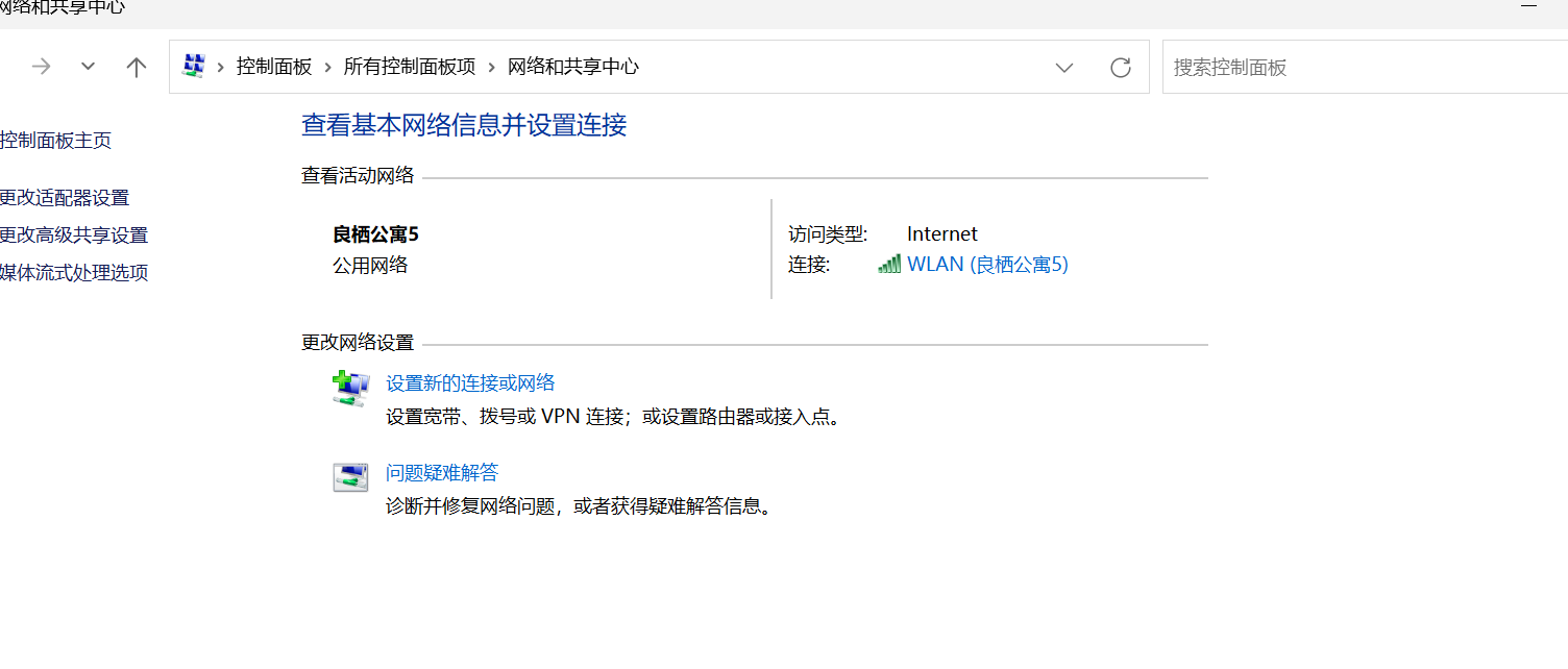 打开控制面板,进入网络和共享中心