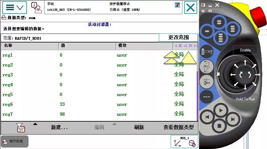 3)pc连接上机器人后,点击显示,如下图,显示内容为reg6的值