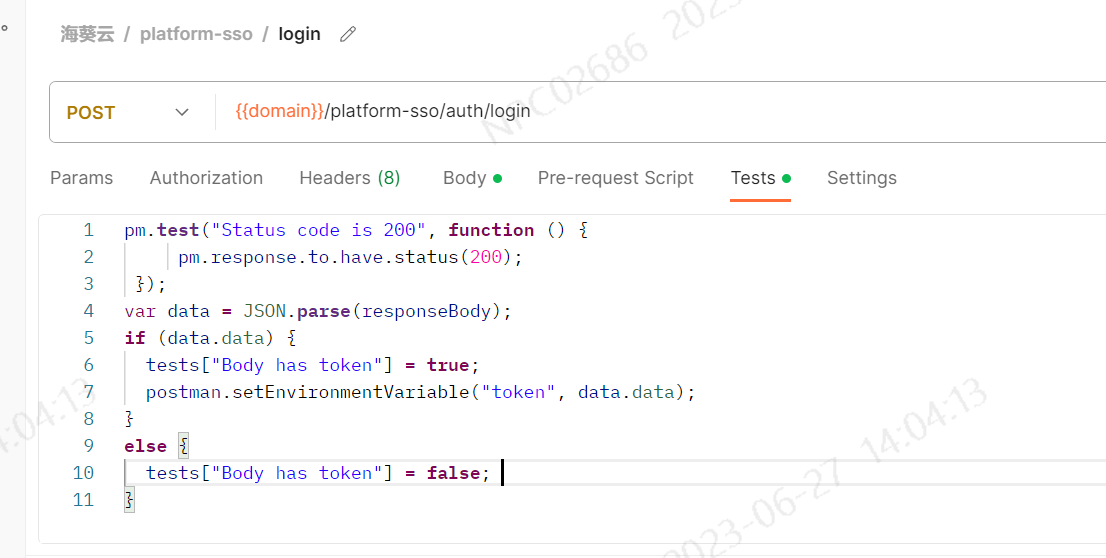 在请求的Tests添加如下内容,即可实现刷新环境的token