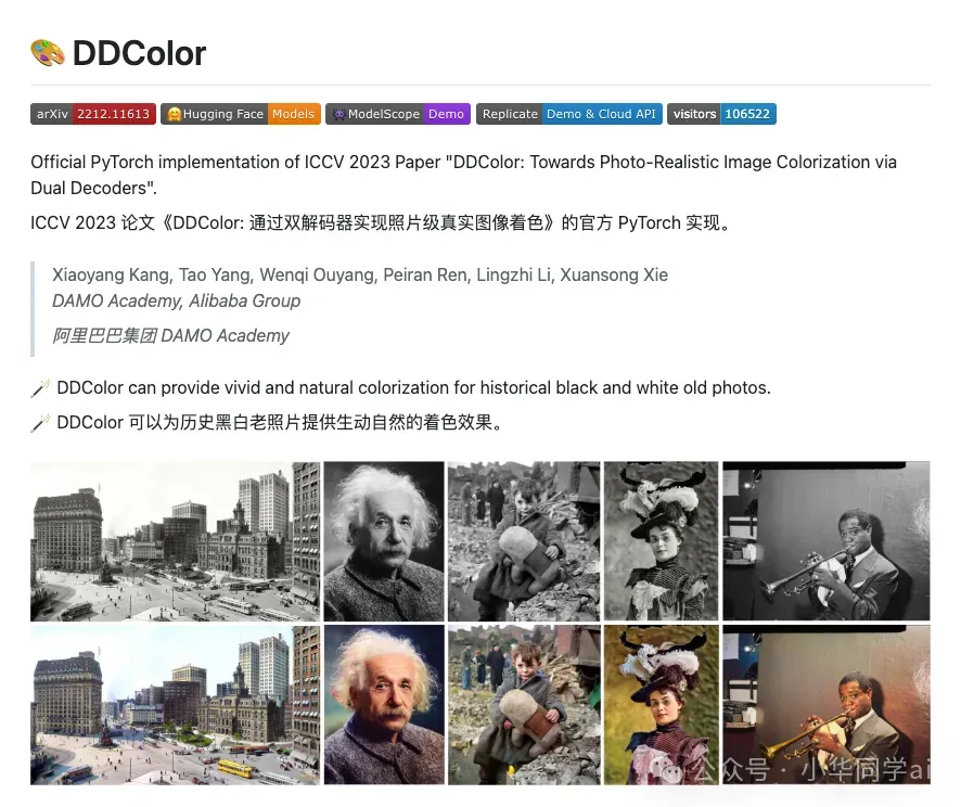 DDColor: Towards Photo‑Realistic Image Colorization via Dual Decoders 作者:Xiaoyang Kang 等,DAMO Academy(阿里达摩院) ICCV 2023 论文实现|公开PyTorch代码与预训练模型