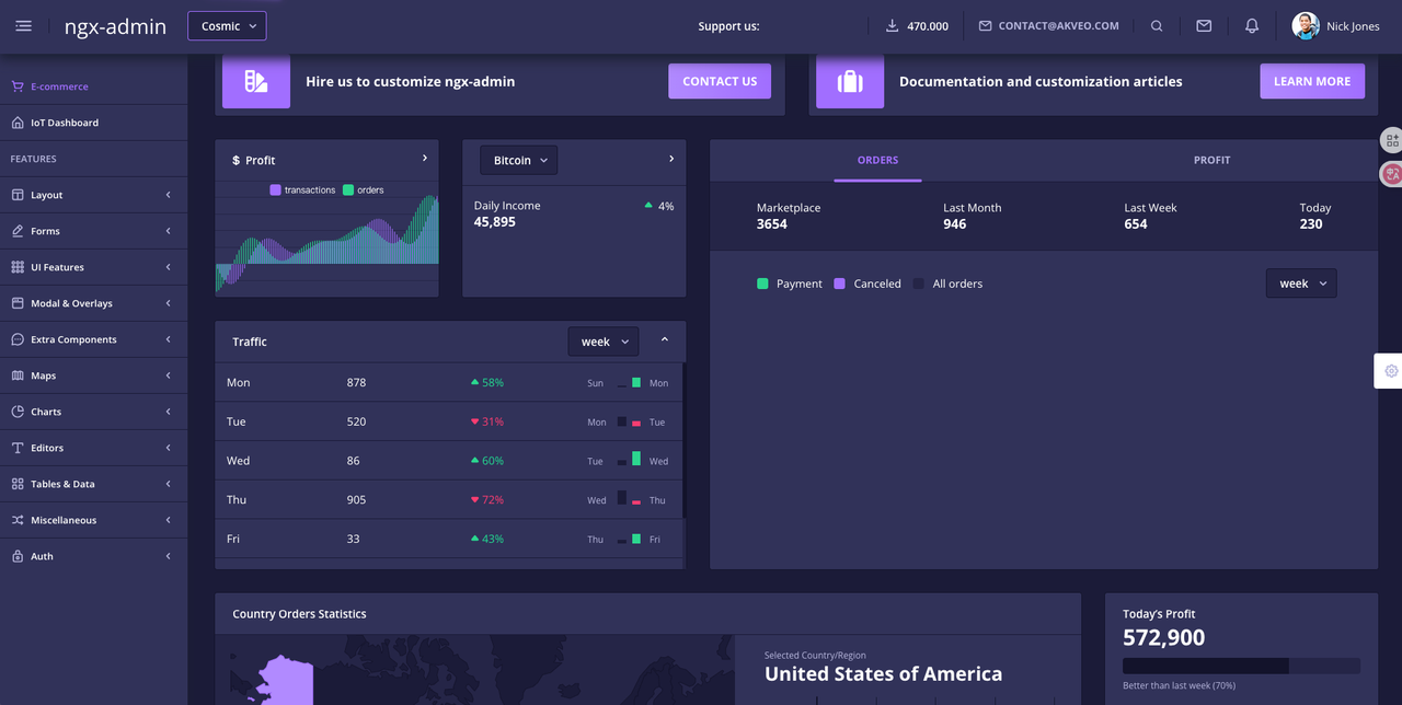 "ngx‑admin 能为企业节省约 33,000 美元开发成本,提升 480 小时效率” 。如今已有 25.5K ⭐、8K fork,是 GitHub 上最受欢迎的 Angular 后台模板之一 支持移动响应、暗黑/多主题,以及丰富的 UI 组件,适用于企业级应用与多种业务场景。