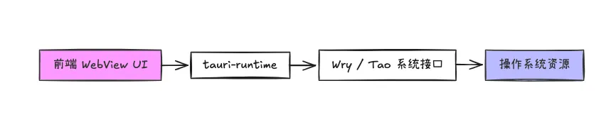 WebUI 与 Rust 后端交互: 前端可调用 window.tauri.invoke('commandName', {...})请求后端 API。