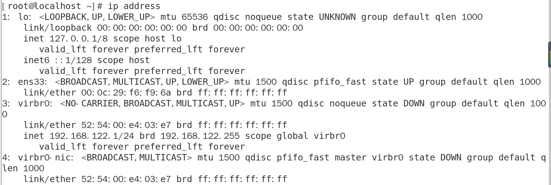 3.运行虚拟机后,输入ip address 查看网卡的信息