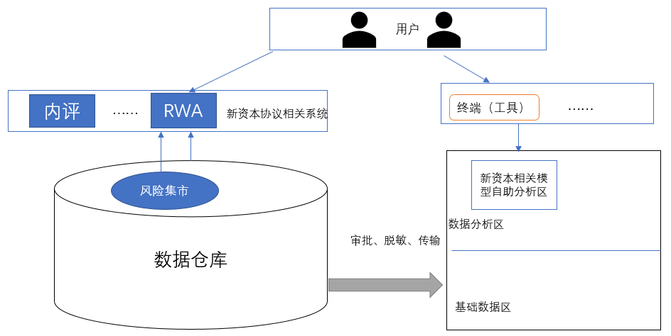 (3)风险集市:那RWA的计算需要每天从数据仓库抽取大批量数据进行计算,计算指标非常专业,因此需要建立专门的集市进行计算,由于许多指标行内的风险管理也会使用到,因此可以放在风险集市中统一加工风险相关指标和数据,那也可以单独建立一个集市专门为新资本协议的实施进行数据加工,那可以将部分行内使用的风险指标放到汇总指标层进行加工。