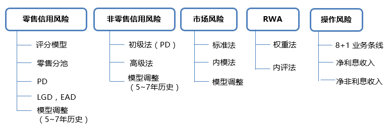 每个银行具体实施路径也会不同,系统分布和架构也不尽相同,在一些大银行实施时,RWA系统可能会分为几个子系统如操作风险RWA、市场风险RWA、信用风险RWA、压力测试等。
