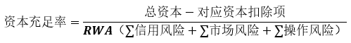 风险加权资产(RWA)是指对银行的资产加以分类,根据不同类别资产的风险性质确定不同的风险系数,以这种风险系数为权重求得的资产总额。根据风险类别的不同,风险加权资产由信用风险加权资产、市场风险加权资产、操作风险加权资产 三部分构成。