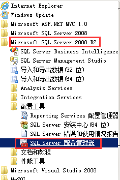 在【所有程序】—【Microsoft SQL Server 2008 R2】—【配置工具】—【SQL Server 配置管理器】