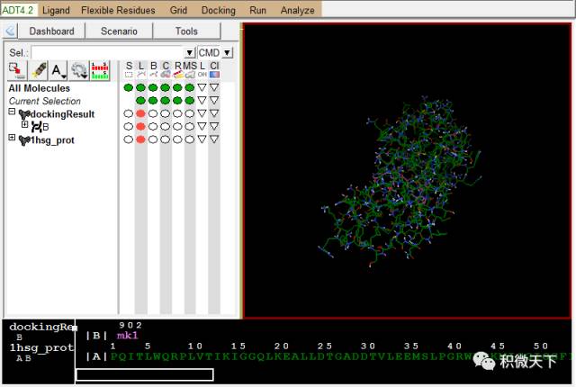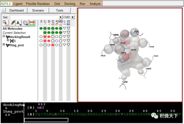 Analzye-Macromolecule-Open-1hsg_prot.pdbqt左图是Vina结果展示;右图为蛋白结果展示