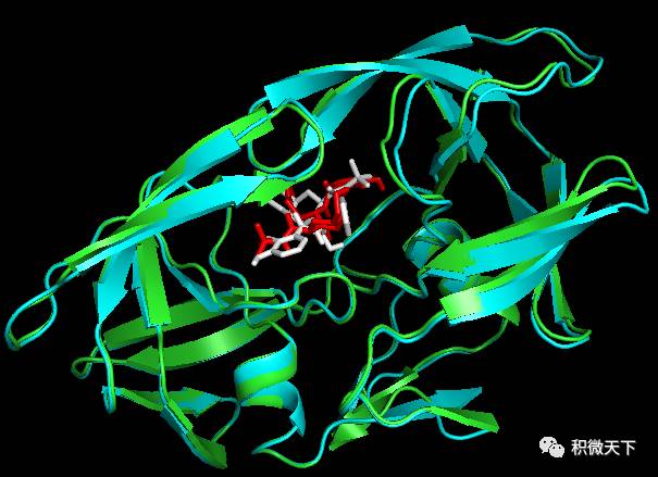 找一个序列结构类似的有配体-受体复合物的3D结构,与未知活性位点的蛋白进行对比: