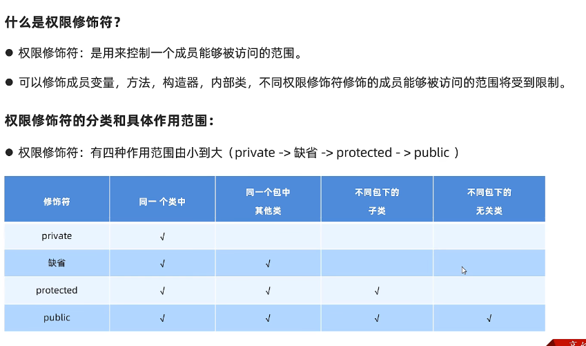 什么是权限修饰符和权限修饰符的分类和具体作用范围:
