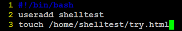 案例2:使用root用户帐号创建并执行test2.sh,实现创建一个shelltest用户,并在其家目录中新建文件try.html。
