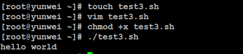 案例1:创建test.sh,实现第一个shell脚本程序,输出hello world