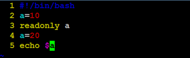 案例:定义变量a并且其值为10,随后设置其为只读变量,再去尝试重新赋值