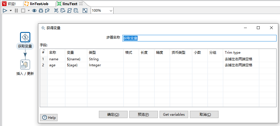 $ ~/kettle/data-integration/kitchen.sh -file ~/workplace/kettle/test01/linTestJob.kjb -param:n=lisi -param:a=25