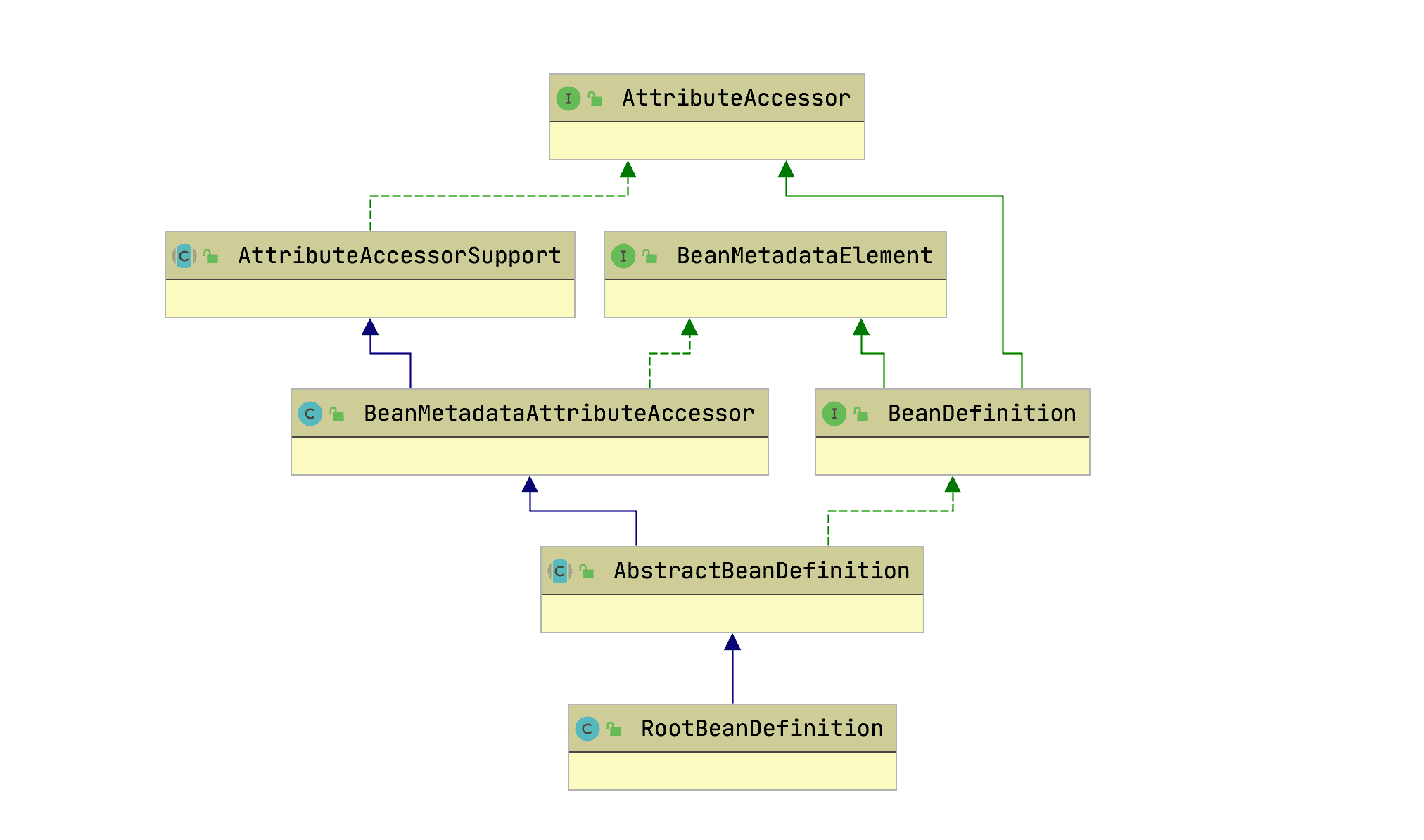 Spring 配置文件中每一个<bean>节点元素在 Spring 容器里都通过一个 BeanDefinition 对象表示,它描述了 Bean 的配置信息。而 BeanDefinitionRegistry 接口提供了向容器手工注册 BeanDefinition 对象的方法。