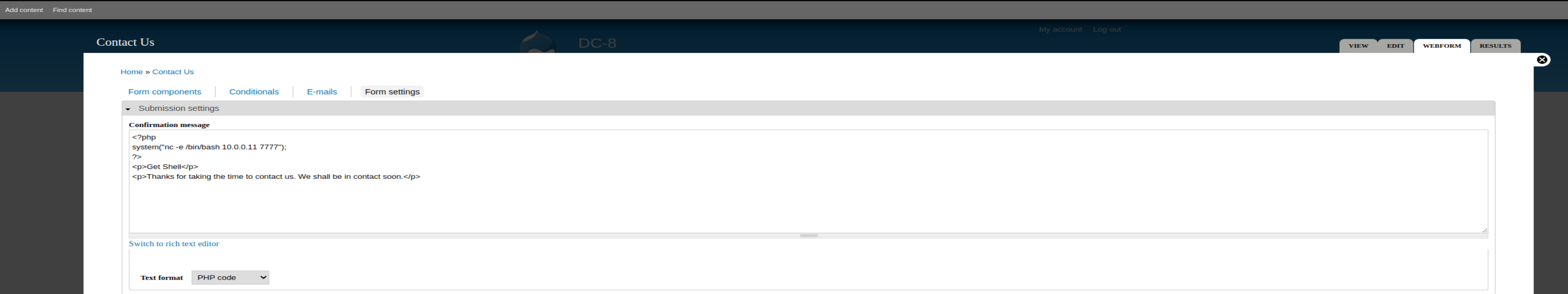 - 发现ContactUs网页可编辑,并且支持PHP。先尝试植入木马。